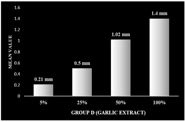 Graph 3: Zone of inhibition at different concentrations of group D (garlic) extract.