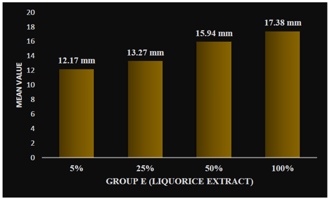 Graph 4: Zone of inhibition at different concentrations of group E (liquorice) extract.